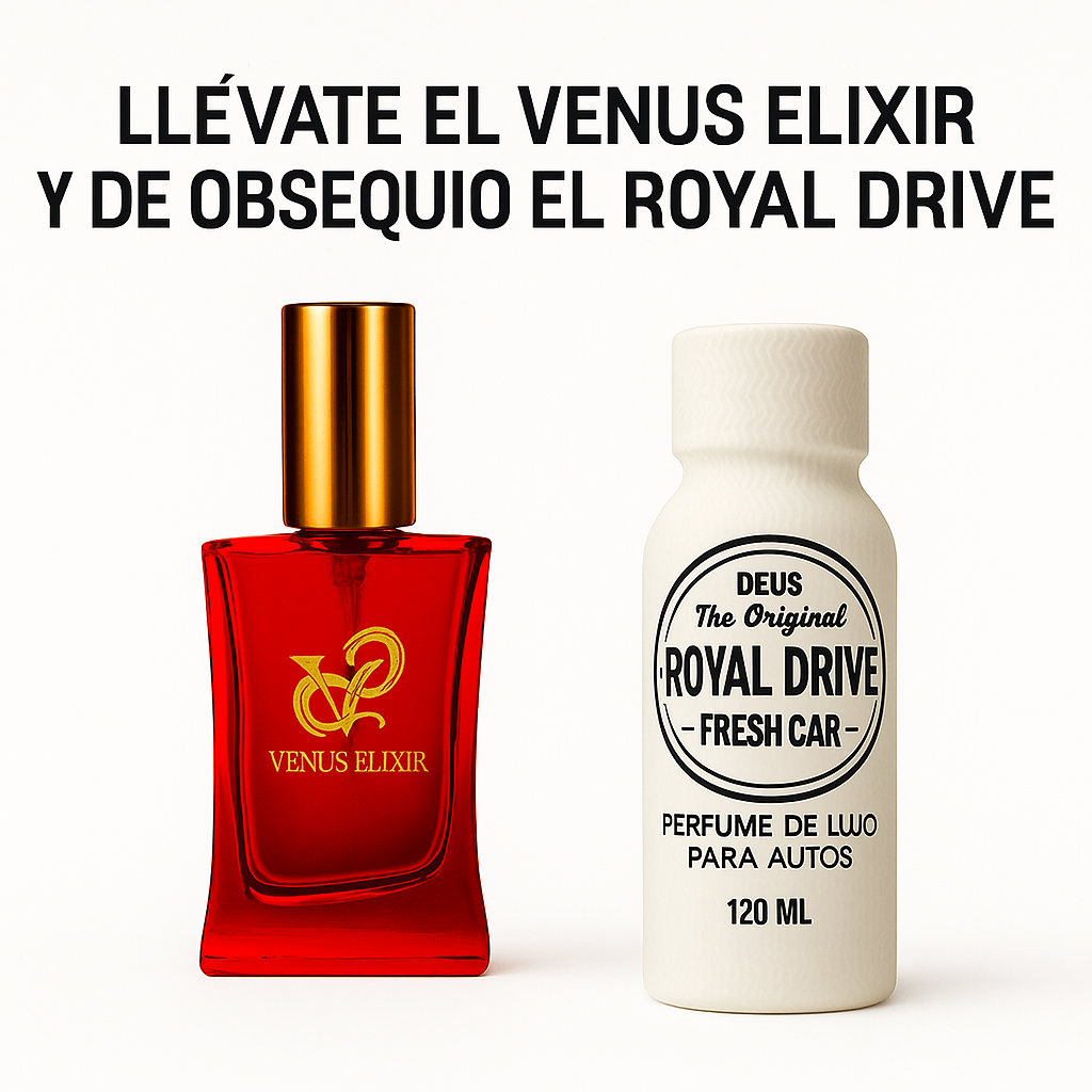 Perfume Venus Elixir + Perfume para auto Royal drive